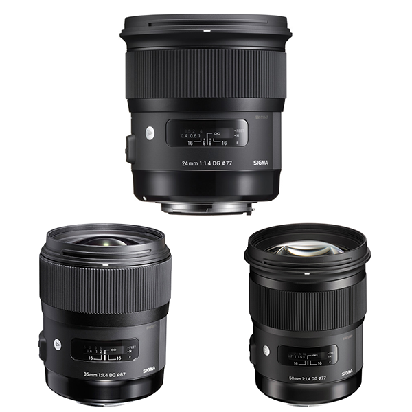 This sigma set includes : Sigma Art 35mm 1.4 Prime Lens, Sigma Art 24mm 1.4 Prime Lens and Sigma Art 50mm 1.4 Prime Lens.